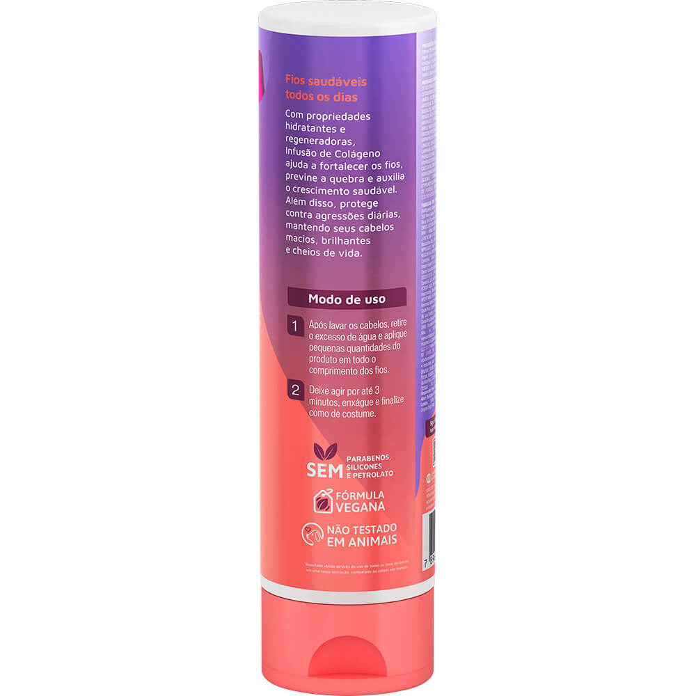 Hidratação, tratamento, nutrição e um aumento de até 23% no diâmetro dos fios e de até 80% no brilho*.<br><br><br>*Resultado obtido através do uso de toda a família Infusão de Colágeno, em uma única aplicação, quando comparado ao cabelo não tratado.<br><br><br>Produto vegano.<br><br><br>Não testado em animais.<br><br><br>Fórmula liberada sem sulfato, parabenos, silicone e petrolatos.