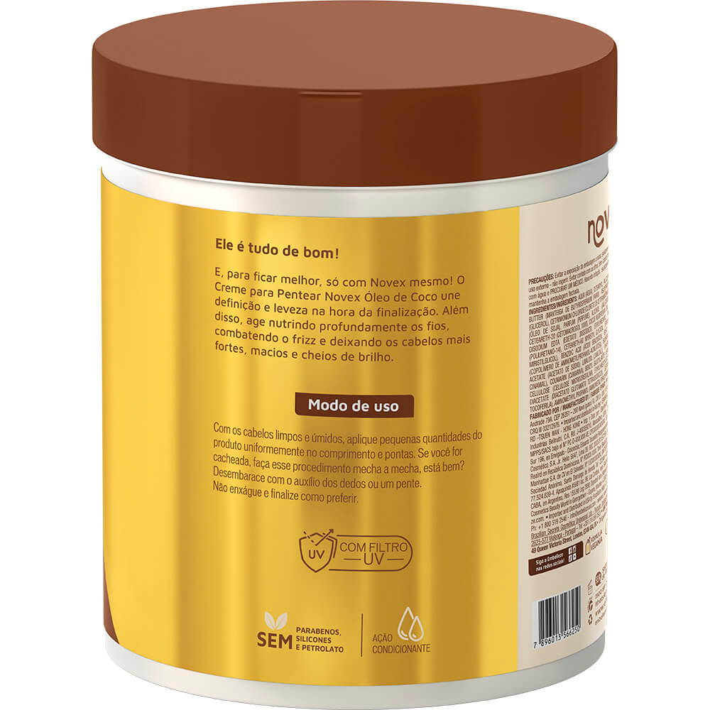 Por isso, além de sua ação condicionante, o Creme de Pentear Novex Óleo de Coco age nutrindo profundamente os fios, combatendo as pontas duplas, o frizz, protegendo do sol e deixando os cabelos muito macios e cheios de brilho.