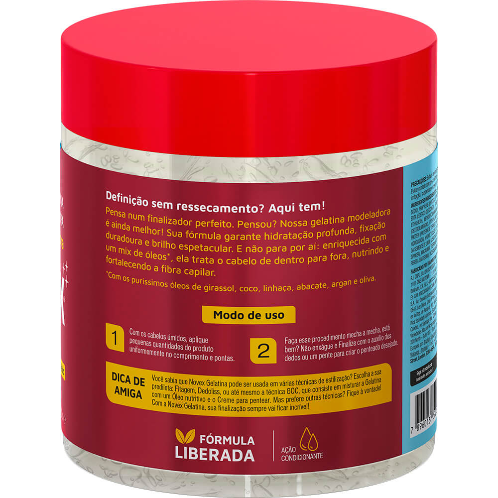 Definição sem ressecamento? Aqui tem! Pensa num finalizador perfeito. Pensou? Nossa gelatina modeladora é ainda melhor! Sua fórmula garante hidratação profunda, fixação duradoura e brilho espetacular. E não para por aí: enriquecida com um mix de óleos*, ela trata o cabelo de dentro para fora, nutrindo e fortalecendo a fibra capilar. *Com os puríssimos óleos de girassol, coco, linhaça, abacate, argan e oliva.