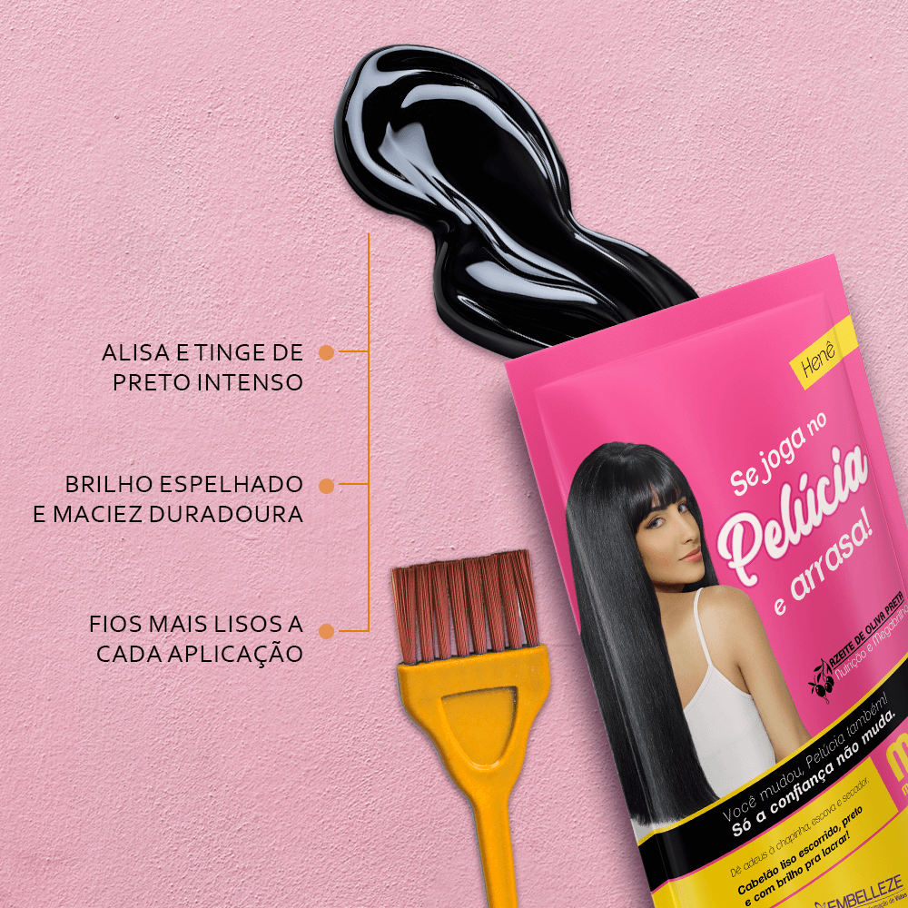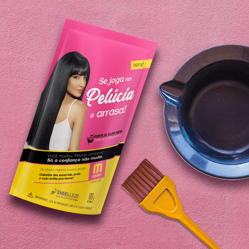 Deseja o liso perfeito e um preto absoluto, mas com uma ação um pouco mais suave? O Henê Pelúcia Médio Pouch 180G é ideal para você! Este Henê oferece um alisamento progressivo que, a cada aplicação, reduz o volume, elimina o frizz e colore os seus fios com um preto profundo e radiante.