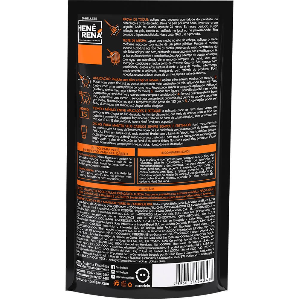 Se desejar cobrir cabelos brancos, recomendamos nossa coloração Natucor, livre de água-oxigenada e amônia. Se você coloriu, descoloriu ou usou outro tipo de alisante, aguarde 30 dias antes de aplicar o Henê Gel Rená. Não é recomendado para gestante.
