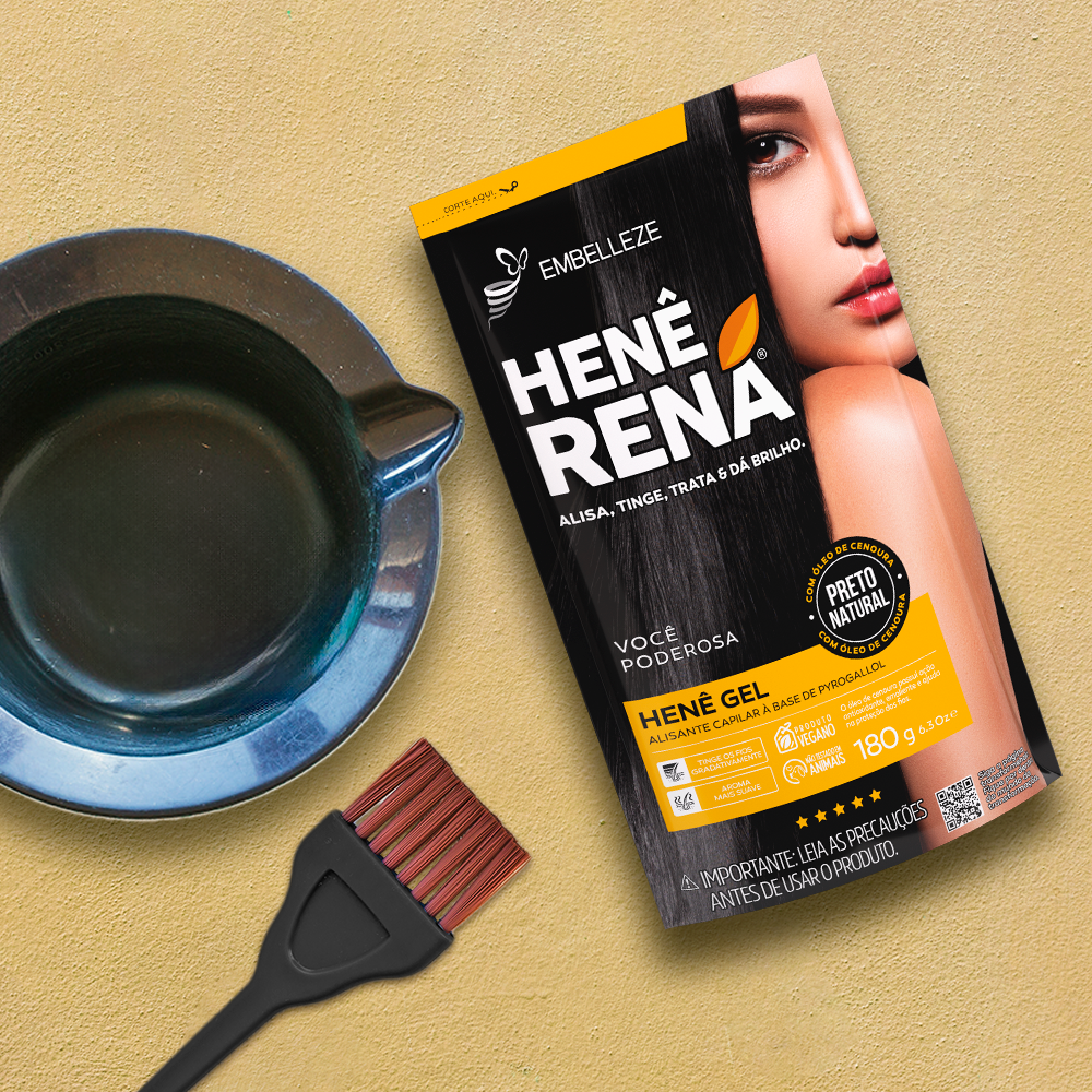 RETOQUE: Ao fim do alisamento, que varia de acordo com o tipo de cabelo e o resultado desejado, faça apenas o retoque na raiz de 15 em 15 dias, evitando levar o Henê para as pontas.