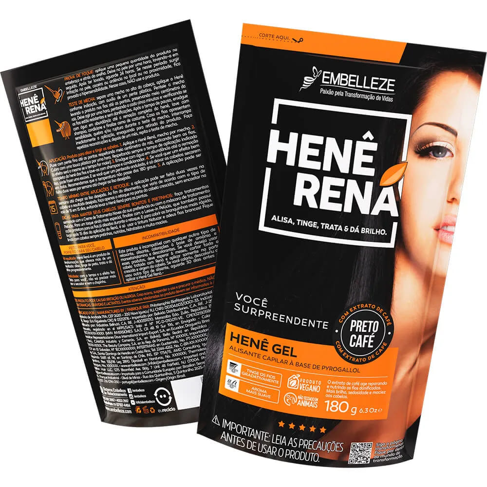 O Henê Rená Preto Café é o seu novo aliado na busca por cabelos lisos, pretos e radiantes. Com ele, você conquista fios alinhados, cor intensa e brilho deslumbrante, tudo em um único produto. Porque toda Morena Surpreendente nasceu para brilhar!