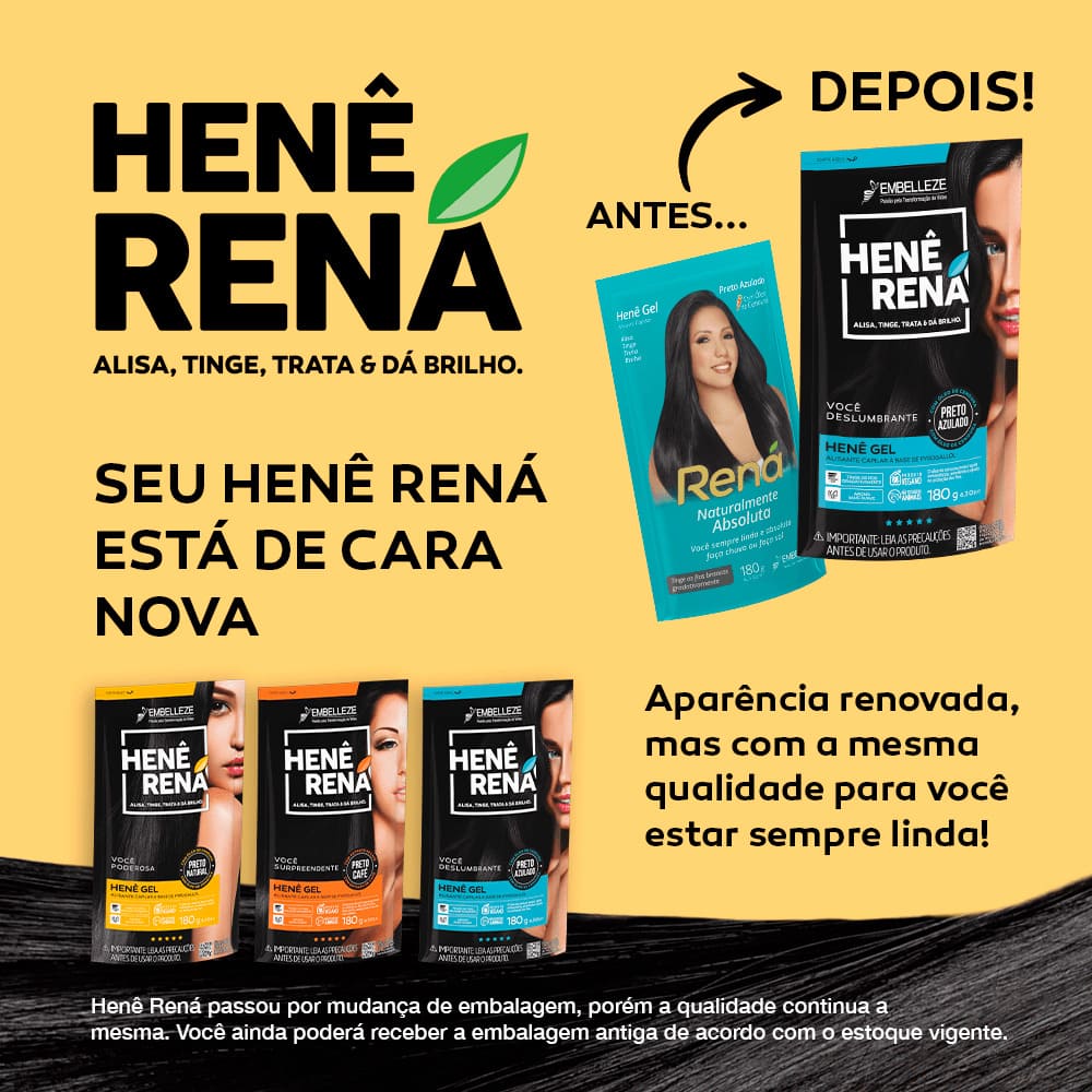 O Henê Rená Preto Azulado alisa progressivamente, tinge os fios de preto, trata e dá brilho aos cabelos. Seus cabelos ficam mais lisos, sedosos, cheios de brilho e movimento a cada aplicação. Tinge os fios brancos gradativamente.