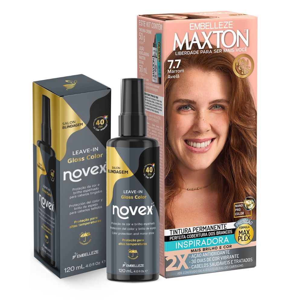 Leave-In Novex Blindagem Gloss Color 120ML São diversos benefícios para os seus fios, como o efeito gloss, hidratação intensa, proteção UV e proteção térmica. Além desses benefícios, ainda podemos destacar o toque leve no cabelo, não deixando a sensação de peso, o que contribui diretamente para manter seus cabelos alinhados. Tinta de Cabelo Maxton Delícias Marrom Avelã 7.7 2X Mais brilho e cor para você Ação Antioxidante 30 Dias de cor Vibrante Cabelões saudáveis e Tratados