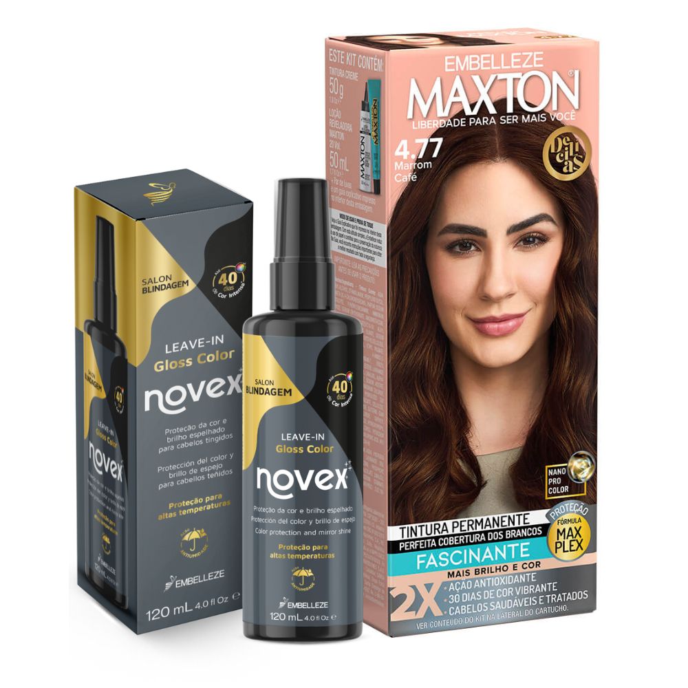 Leave-In Novex Blindagem Gloss Color 120ML São diversos benefícios para os seus fios, como o efeito gloss, hidratação intensa, proteção UV e proteção térmica. Além desses benefícios, ainda podemos destacar o toque leve no cabelo, não deixando a sensação de peso, o que contribui diretamente para manter seus cabelos alinhados. Tinta de cabelo Maxton Delícias Capuccino 4.3 2X Mais brilho e cor para você Ação Antioxidante 30 Dias de cor Vibrante Cabelões saudáveis e Tratados