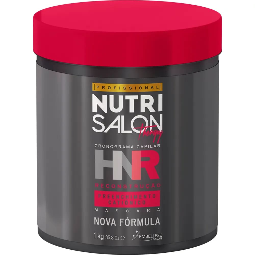 Máscara Capilar de Hidratação HNR NutriSalon 1KG: AQUA (ÁGUA), CETEARYL ALCOHOL (ÁLCOOL CETOESTEARÍLICO), PARAFFINUM LIQUIDUM (PETROLATO LÍQUIDO), STEARAMIDOPROPYL DIMETHYLAMINE (ESTEARAMIDOPROPIL DIMETILAMINA), BEHENTRIMONIUM CHLORIDE (CLORETO DE BEENTRIMÔNIO), CETRIMONIUM CHLORIDE (CLORETO DE CETRIMÔNIO), BUTYROSPERMUM PARKII BUTTER (MANTEIGA DE BUTYROSPERMUM PARKII), BENZYL ALCOHOL (ÁLCOOL BENZÍLICO), PARFUM (PERFUME), ALCOHOL (ÁLCOOL ETÍLICO), CAPRYLIC/CAPRIC TRIGLYCERIDE (TRIGLICERÍDEO CAPRÍLICO/CÁPRICO), BIS-CETEARYL AMODIMETHICONE (BIS-CETEARIL AMODIMETICONA), CITRIC ACID (ÁCIDO CÍTRICO), ISOPROPYL ALCOHOL (ÁLCOOL ISOPROPÍLICO), PHENOXYETHANOL (FENOXIETANOL), HYDROXYETHYLCELLULOSE (HIETELOSE), AMODIMETHICONE (AMODIMETICONA), LACTIC ACID (ÁCIDO LÁCTICO), BENZOIC ACI (ÁCIDO BENZOICO), LINALOOL (LINALOL), CETEARETH-25 (CETOMACROGOL 1000), CETEARETH-7 (CETOMACROGOL 1000), CARAMEL (MARROM CARAMELO 150A), PEG- 90M (MACROGOL), SORBIC ACID (ÁCIDO SÓRBICO), HYDROXYCITRONELLAL (HIDROXICITRONELAL), BENZYL SALICYLATE (SALICILATO DE BENZILA), D-LIMONENE (DEXTROLIMONENO), SODIUM ACETATE (ACETATO DE SÓDIO), TRIDECETH-12 (POLIETILENOGLICOL-12 ÉTER DE ÁLCOOL TRIDECÍLICO), CAPRYLYL GLYCOL (CAPRILILGLICOL), CELLULOSE (CELULOSE), SODIUM BENZOATE (BENZOATO DE SÓDIO), GLYCERIN (GLICEROL), DIPROPYLENE GLYCOL (DIPROPILENOGLICOL), SODIUM HYALURONATE (HIALURONATO DE SÓDIO), HYALURONIC ACID (ÁCIDO HIALURÔNICO), POTASSIUM SORBATE (SORBATO DE POTÁSSIO). Máscara Capilar de Nutrição HNR NutriSalon 1KG: AQUA (ÁGUA), CETEARYL ALCOHOL (ÁLCOOL CETOESTEARÍLICO), PARAFFINUM LIQUIDUM (PETROLATO LÍQUIDO), STEARAMIDOPROPYL DIMETHYLAMINE (ESTEARAMIDOPROPIL DIMETILAMINA), BEHENTRIMONIUM CHLORIDE (CLORETO DE BEENTRIMÔNIO), CETRIMONIUM CHLORIDE (CLORETO DE CETRIMÔNIO), BUTYROSPERMUM PARKII BUTTER (MANTEIGA DE BUTYROSPERMUM PARKII), BENZYL ALCOHOL (ÁLCOOL BENZÍLICO), PARFUM (PERFUME), ALCOHOL (ÁLCOOL ETÍLICO), CAPRYLIC/CAPRIC TRIGLYCERIDE (TRIGLICERÍDEO CAPRÍLICO/CÁPRICO), BIS-CETEARYL AMODIMETHICONE (BIS-CETEARIL AMODIMETICONA), CITRIC ACID (ÁCIDO CÍTRICO), ISOPROPYL ALCOHOL (ÁLCOOL ISOPROPÍLICO), PHENOXYETHANOL (FENOXIETANOL), HYDROXYETHYLCELLULOSE (HIETELOSE), AMODIMETHICONE (AMODIMETICONA), LACTIC ACID (ÁCIDO LÁCTICO), TOCOPHERYL ACETATE (ACETATO DE TOCOFERILA), HELIANTHUS ANNUUS SEED OIL (ÓLEO DE GIRASSOL), BENZOIC ACID (ÁCIDO BENZOICO), D-LIMONENE (DEXTROLIMONENO), CETEARETH-25 (CETOMACROGOL 1000), CETEARETH-7 (CETOMACROGOL 1000), CARAMEL (MARROM CARAMELO 150A), PEG-90M (MACROGOL), SORBIC ACID (ÁCIDO SÓRBICO), LINALOOL (LINALOL), COCOS NUCIFERA OIL (ÓLEO DE COCO), SODIUM ACETATE (ACETATO DE SÓDIO), LINUM USITATISSIMUM SEED OIL (ÓLEO DA SEMENTE DE LINUM USITATISSIMUM), TRIDECETH-12 (POLIETILENOGLICOL-12 ÉTER DE ÁLCOOL TRIDECÍLICO), COUMARIN (CUMARINA), CAPRYLYL GLYCOL (CAPRILILGLICOL), PERSEA GRATISSIMA OIL (ÓLEO DE PERSEA GRATISSIMA), ARGANIA SPINOSA KERNEL OIL (ÓLEO DA SEMENTE DE ARGANIA SPINOSA), CELLULOSE (CELULOSE), MACADAMIA TERNIFOLIA SEED OIL (ÓLEO DA SEMENTE DE MACADAMIA TERNIFOLIA), OLEA EUROPAEA FRUIT OIL (ÓLEO DE OLIVA), SODIUM BENZOATE (BENZOATO DE SÓDIO), ROSMARINUS OFFICINALIS LEAF EXTRACT (EXTRATO DA FOLHA DE ROSMARINUS OFFICINALIS). Máscara Capilar de Reconstrução HNR NutriSalon 1KG: AQUA (ÁGUA), CETEARYL ALCOHOL (ÁLCOOL CETOESTEARÍLICO), PARAFFINUM LIQUIDUM (PETROLATO LÍQUIDO), STEARAMIDOPROPYL DIMETHYLAMINE (ESTEARAMIDOPROPIL DIMETILAMINA), BEHENTRIMONIUM CHLORIDE (CLORETO DE BEENTRIMÔNIO), CETRIMONIUM CHLORIDE (CLORETO DE CETRIMÔNIO), BUTYROSPERMUM PARKII BUTTER (MANTEIGA DE BUTYROSPERMUM PARKII), BENZYL ALCOHOL (ÁLCOOL BENZÍLICO), PARFUM (PERFUME), ALCOHOL (ÁLCOOL ETÍLICO), CAPRYLIC/CAPRIC TRIGLYCERIDE (TRIGLICERÍDEO CAPRÍLICO/CÁPRICO), BIS-CETEARYL AMODIMETHICONE (BIS-CETEARIL AMODIMETICONA), CITRIC ACID (ÁCIDO CÍTRICO), ISOPROPYL ALCOHOL (ÁLCOOL ISOPROPÍLICO), PHENOXYETHANOL (FENOXIETANOL), HYDROXYETHYLCELLULOSE (HIETELOSE), AMODIMETHICONE (AMODIMETICONA), LACTIC ACID (ÁCIDO LÁCTICO), HEXYL CINNAMAL (HEXIL CINAMAL), BENZOIC ACID (ÁCIDO BENZOICO), CETEARETH-25 (CETOMACROGOL 1000), CETEARETH-7 (CETOMACROGOL 1000), CARAMEL (MARROM CARAMELO 150A), PEG-90M (MACROGOL), COUMARIN (CUMARINA), SORBIC ACID (ÁCIDO SÓRBICO), ALPHA-ISOMETHYL IONONE (ALFA-ISOMETIL IONONA), SODIUM PCA (PIDOLATO DE SÓDIO), SODIUM ACETATE (ACETATO DE SÓDIO), PROPYLENE GLYCOL (PROPILENOGLICOL), TRIDECETH-12 (POLIETILENOGLICOL-12 ÉTER DE ÁLCOOL TRIDECÍLICO), ARGININE (ARGININA), CAPRYLYL GLYCOL (CAPRILILGLICOL), CELLULOSE (CELULOSE), SERINE (SERINA), PROLINE (PROLINA), SODIUM BENZOATE (BENZOATO DE SÓDIO), ACETYL CYSTEINE (ACETILCISTEÍNA), DISODIUM EDTA (EDETATO DISSÓDICO).
