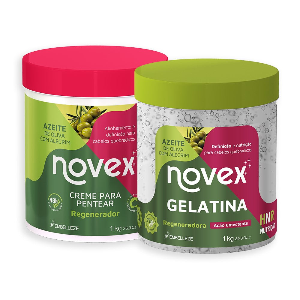 Enriquecida com o poderoso azeite de oliva. A gelatina Novex Azeite de Oliva com Alecrim Regeneradora tem vitaminas, minerais e agentes emolientes, hidratantes e nutritivos que restauram a flexibilidade natural dos cabelos ressecados e quebradiços. Além de oferecer definição e controle do frizz. Alinhamento e definição para cabelos quebradiços. Com ação prolongada, esses super ativos promovem um efeito tonificante nos fios ao mesmo tempo em que nutrem e definem as mechas.