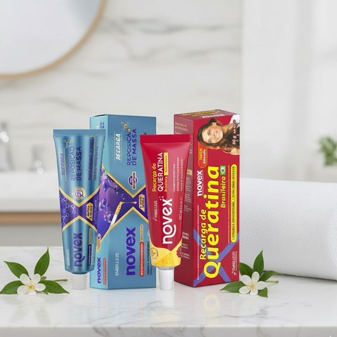 Tratamento Reconstrutor Novex Recarga de Queratina Brasileira: AQUA (ÁGUA), CETEARYL ALCOHOL (ÁLCOOL CETOESTEARÍLICO), GLYCERIN (GLICEROL), BENZYL ALCOHOL (ÁLCOOL BENZÍLICO), ISOPROPYL MYRISTATE (MIRISTATO DE ISOPROPILA), GLYCINE SOJA OIL (ÓLEO DE SOJA), DIISOPROPYL ADIPATE (ADIPATO DE DI-ISOPROPILA), DICAPRYLYL CARBONATE (CARBONATO DE DICAPRILILA), BEHENTRIMONIUM METHOSULFATE (METOSSULFATO DE BEENTRIMÔNIO), BUTYROSPERMUM PARKII BUTTER (MANTEIGA DE BUTYROSPERMUM PARKII), CETRIMONIUM CHLORIDE (CLORETO DE CETRIMÔNIO), PARFUM (PERFUME), ALCOHOL (ÁLCOOL ETÍLICO), DISODIUM EDTA (EDETATO DISSÓDICO), BENZOIC ACID (ÁCIDO BENZOICO), BHT (BUTIL-HIDROXITOLUENO), PANTHENOL (PANTENOL), SALVIA HISPANICA SEED EXTRACT (EXTRATO DA SEMENTE DE SALVIA HISPANICA), LINALOOL (LINALOL), XYLITOL (XILITOL), TREHALOSE (TREALOSE), HEXYL CINNAMAL (HEXIL CINAMAL), SORBIC ACID (ÁCIDO SÓRBICO), CAPRYLYL/CAPRYL GLUCOSIDE (CAPRILIL/CAPRIL GLICOSÍDEO), HYDROLYZED WHEAT PROTEIN (PROTEÍNA DE TRIGO HIDROLISADA), ETHYL LINOLEATE (LINOLEATO DE ETILA), ETHYL OLEATE (OLEATO DE ETILA), BENZYL SALICYLATE (SALICILATO DE BENZILA), SORBITAN OLEATE (OLEATO DE SORBITANA), HYDROLYZED SOY PROTEIN (PROTEÍNA DE SOJA HIDROLISADA), HYDROLYZED CORN PROTEIN (PROTEÍNA DE MILHO HIDROLISADA), POLYQUATERNIUM-37 (POLIQUATÉRNIO-37), TOCOPHERYL ACETATE (ACETATO DE TOCOFERILA), D-LIMONENE (DEXTROLIMONENO), SODIUM PHOSPHATE (FOSFATO DE SÓDIO MONOBÁSICO), HYDROXYCITRONELLAL (HIDROXICITRONELAL), CITRONELLOL (CITRONELOL), GERANIOL (GERANIOL), PHENOXYETHANOL (FENOXIETANOL), CAPRYLIC ACID (ÁCIDO CAPRÍLICO), COUMARIN (CUMARINA), BENZYL BENZOATE (BENZOATO DE BENZILA), TOCOPHEROL (TOCOFEROL), PENTAERYTHRITYL TETRA-DI-T-BUTYL HYDROXYHYDROCINNAMATE (TETRA-DI-T-BUTIL HIDRÓXI-HIDROCINAMATO DE PENTAERITRITILA)