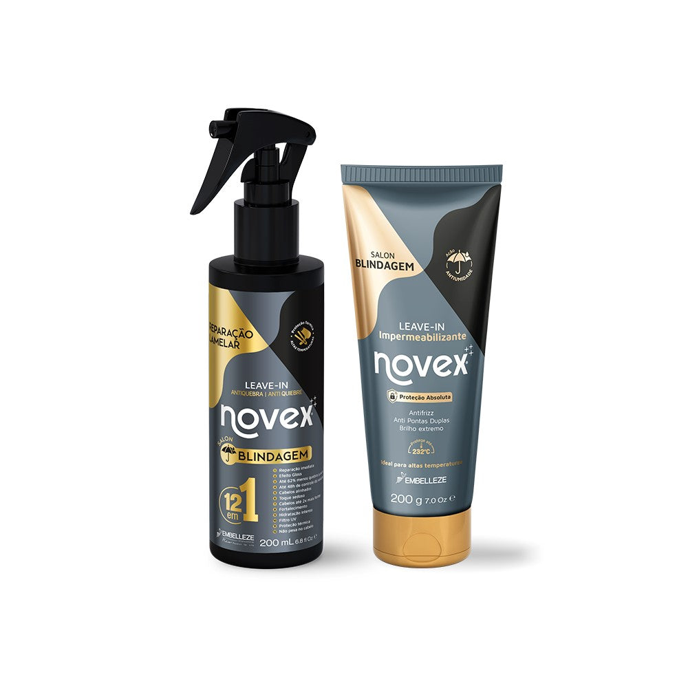 A finalização perfeita existe! Novex Salon Blindagem é um tratamento selante sem enxágue. Sua tecnologia tripla ação foi especialmente desenvolvida para deixar os cabelos luminosos, livres de frizz e sem pontas duplas. Age na camada mais interna da fibra capilar, restaurando os fios danificados e, assim, proporcionando cabelos saudáveis desde o primeiro uso. Esse Kit Contém: 1- Leave-In Impermeabilizante Novex Salon Blindagem 200G 1- Leave-In Novex Salon Blindagem 12 em 1 200ML