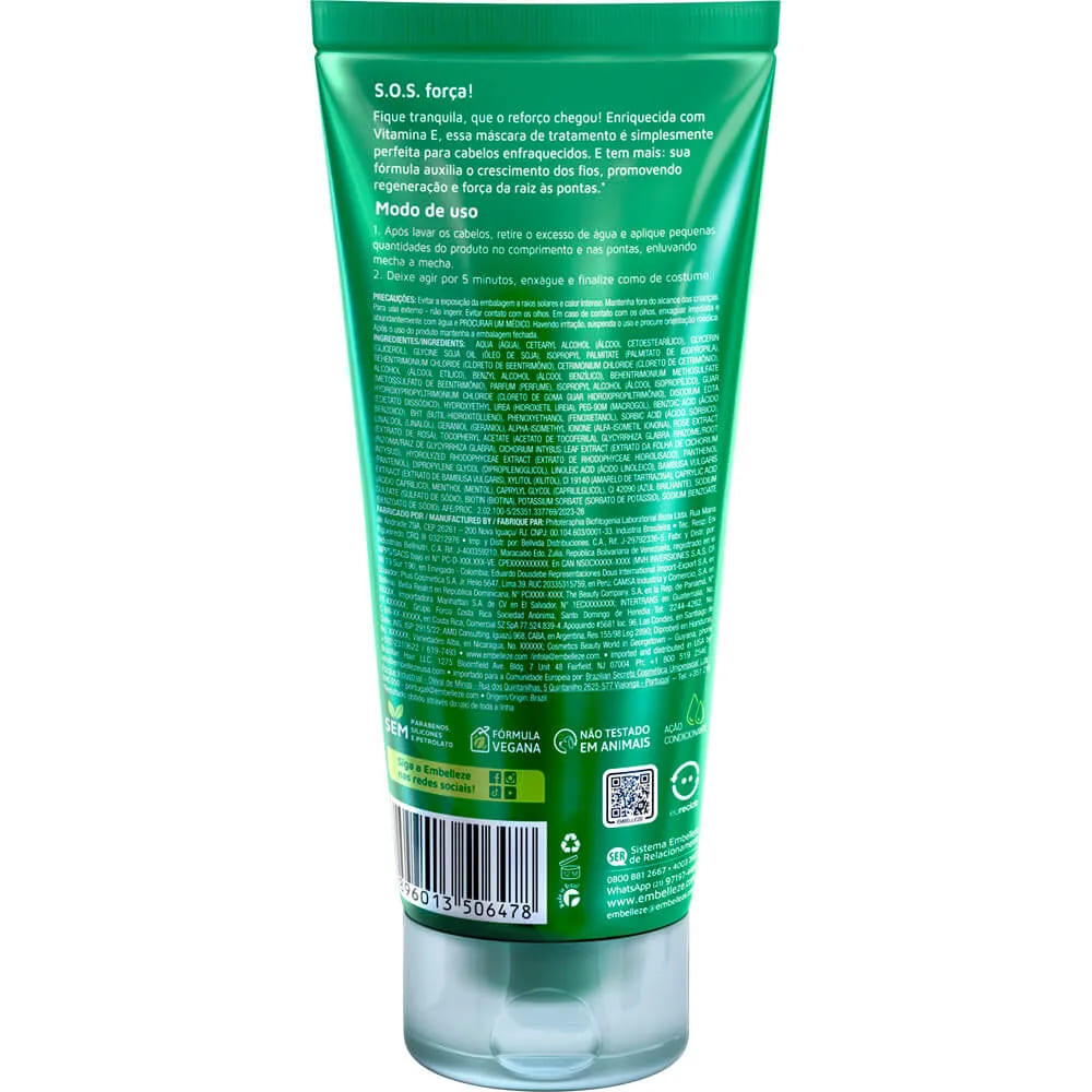 S.O.S Força! Fique tranquila, que o reforço chegou! Enriquecida com Vitamina E, essa máscara de tratamento é simplesmente perfeita para cabelos enfraquecidos. E tem mais: sua fórmula auxilia o crescimento dos fios, promovendo regeneração e força da raiz às pontas.*