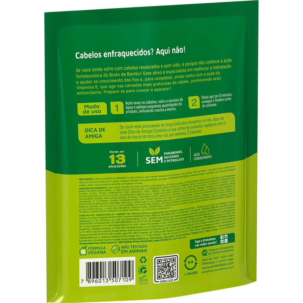 Cabelos Enfraquecidos? Aqui Não!! Se você ainda sofre com cabelos ressecados e sem vida, é porque não conhece a ação fortalecedora do Broto de Bambu! Esse ativo é especialista em melhorar a hidratação e ajudar no crescimento dos fios e, para completar, ainda conta com a ação da Vitamina E, que age nas camadas mais profundas do cabelo, promovendo ação antioxidante. Prepare-se para crescer e aparecer! Esse ativo é especialista em melhorar a hidratação e ajudar no crescimento dos fios e, para completar, ainda conta com a ação da Vitamina E, que age nas camadas mais profundas do cabelo, promovendo ação antioxidante. Prepare-se para crescer e aparecer! O Creme de Tratamento Novex Broto de Bambu age em 3 minutos nos fios dos seus cabelos e faz parte da etapa de Hidratação do seu cronograma capilar. Muita força e crescimento para cabelos enfraquecidos
