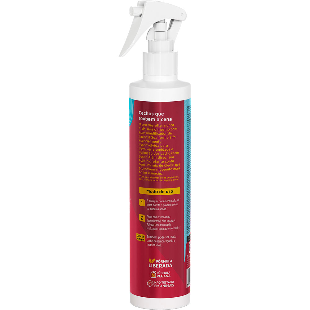 Cachos que roubam a cena! O seu day after nunca mais será o mesmo com esse umidificador de cachos! Sua fórmula foi especialmente desenvolvida para devolver a umidade e definição dos cachos sem pesar. Além disso, sua ação hidratante conta com um mix de óleos* que promovem muuuuito mais brilho e maciez. *Com os puríssimos óleos de girassol, coco, linhaça, abacate, argan e oliva.